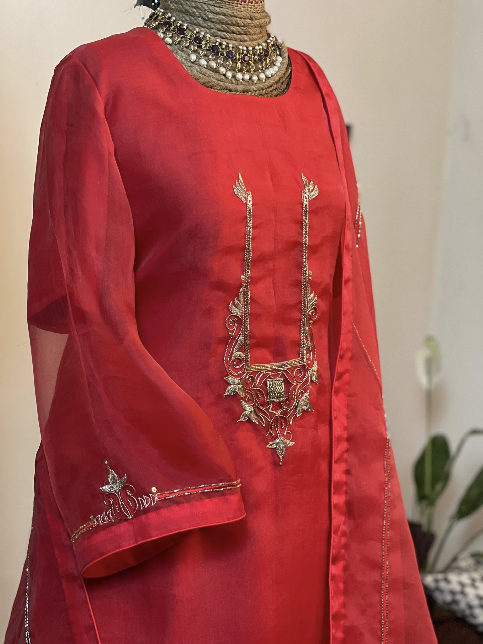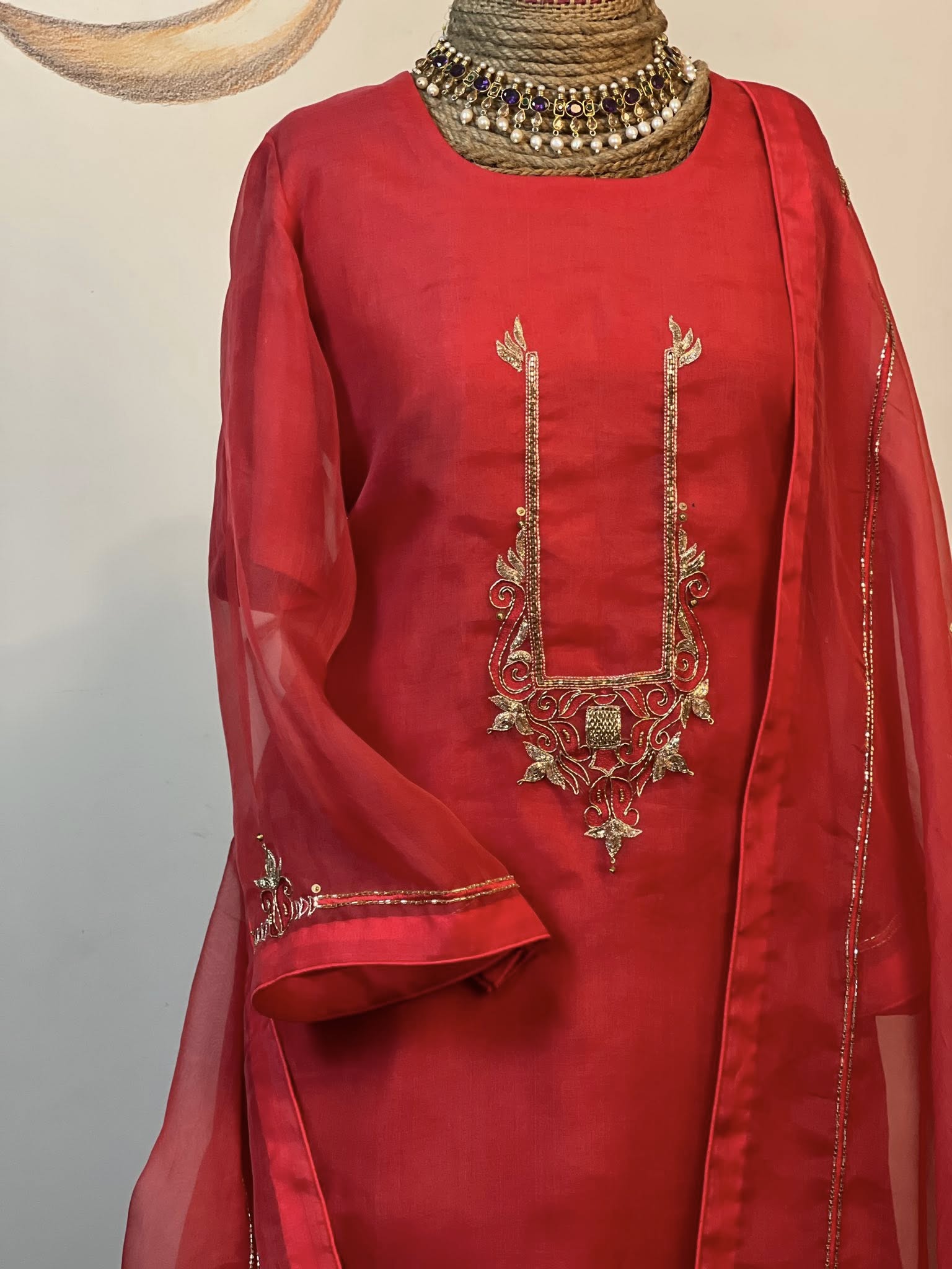 𝗜𝗻𝗰𝗹𝘂𝗱𝗲𝗱: Muslin zardosi work dupatta and pant